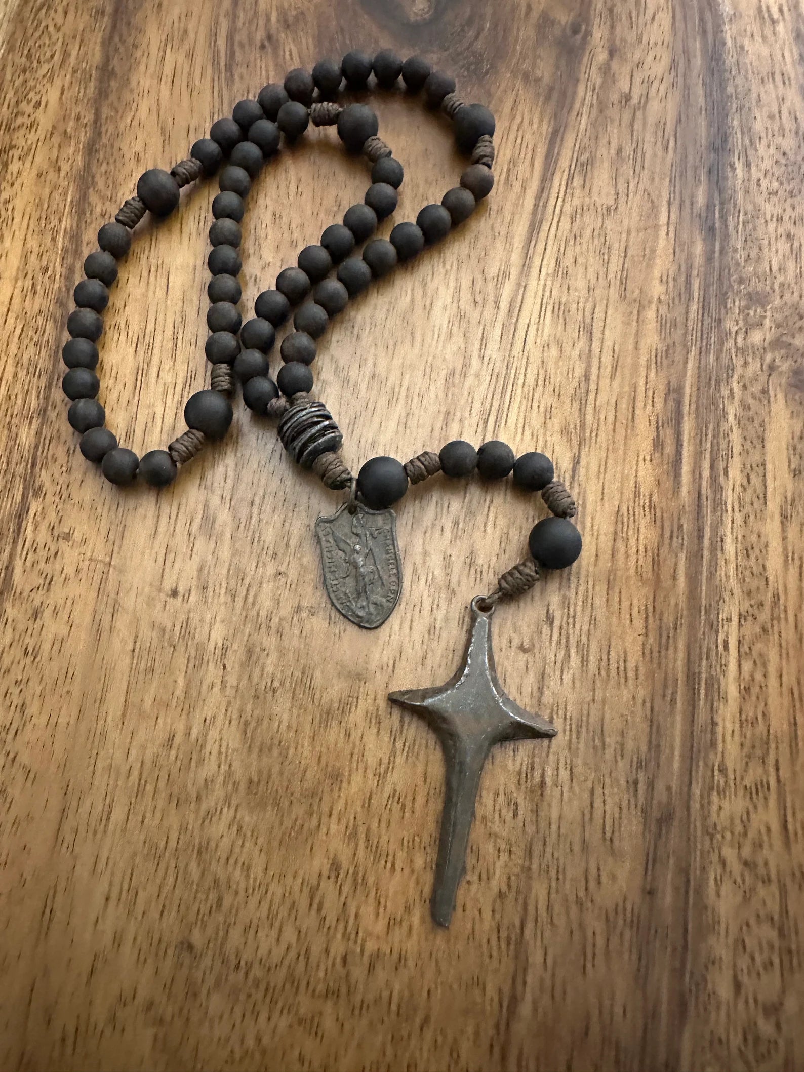 Marvel our exquisite manly, Antique-Style Rosary, crafted with a blend of rustic elegance and tradition. This timeless piece showcases the beauty of aromatic black wood beads, paired with cross metal accents that exude a sense of vintage charm. As you hold the rosary close, a gentle rose aroma wafts through the air enhancing your prayerful moments; transporting you to a bygone era, where time seems to slow down, and the echoes of ancient traditions come to life.